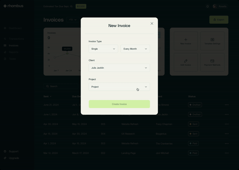 The name 'Rhombus' emerged from the realization that blending a strong sense of trust with a touch of fun was key to getting users excited about managing the less-fun parts of their business. User responses were unanimous: every user wanted a tool that would not only handle bookkeeping tasks seamlessly, but also spark a positive emotional connection.